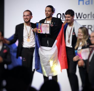 Double Titre de Champion du Monde - Individuel "Hair by Night" et par Équipe "Ladies Technical" - OMC Mondial Coiffure et Beauté - Paris